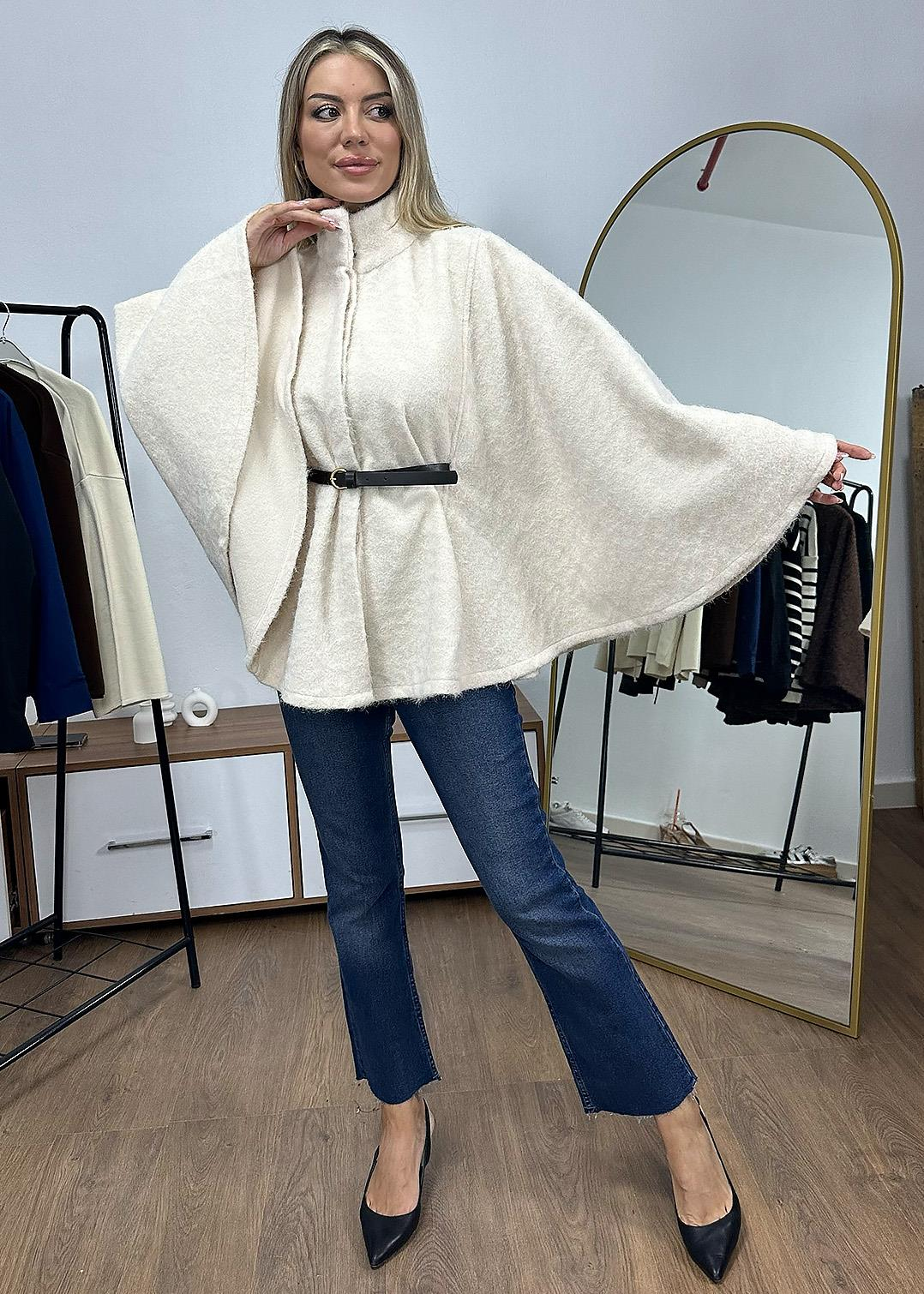Beli Kemerli Kaşe Panço - Krem Beli Kemerli Kaşe Panço -Siyah Beli Kemerli Kaşe Panço - Kahverengi