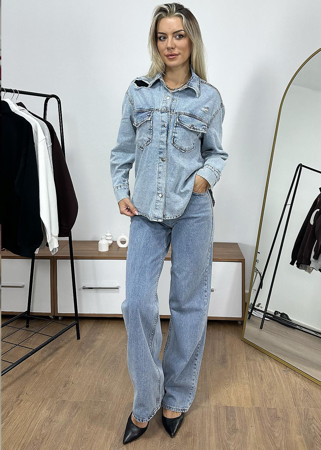 Çift Cepli Kot Gömlek Ceket - Mavi