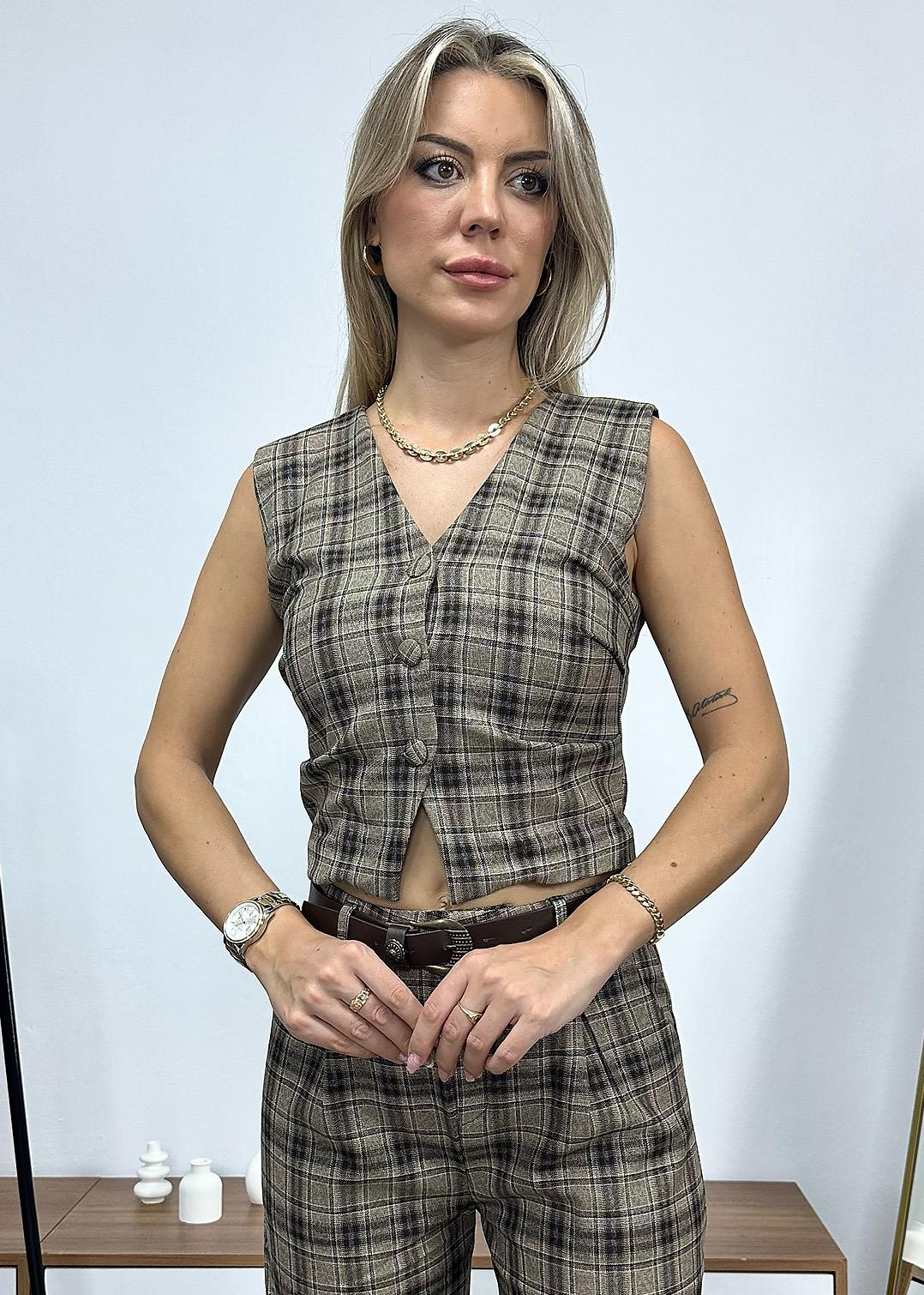 Ekose Yelek - Kahverengi