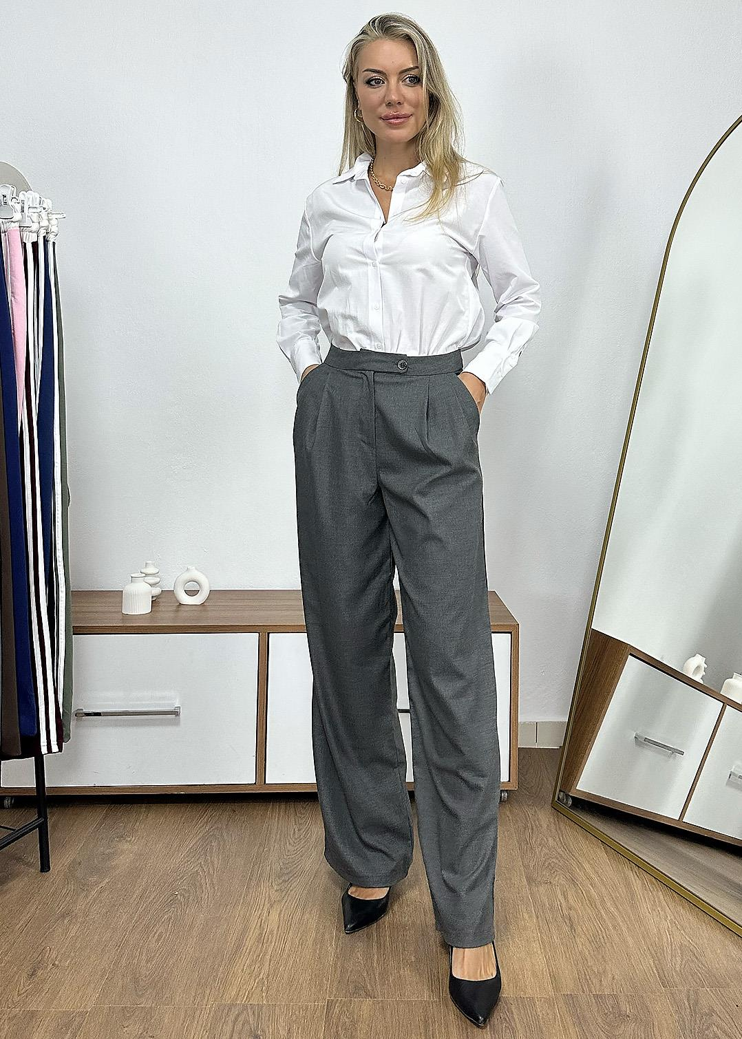 Flotalı Çift Pileli Palazzo Pantolon - Antrasit