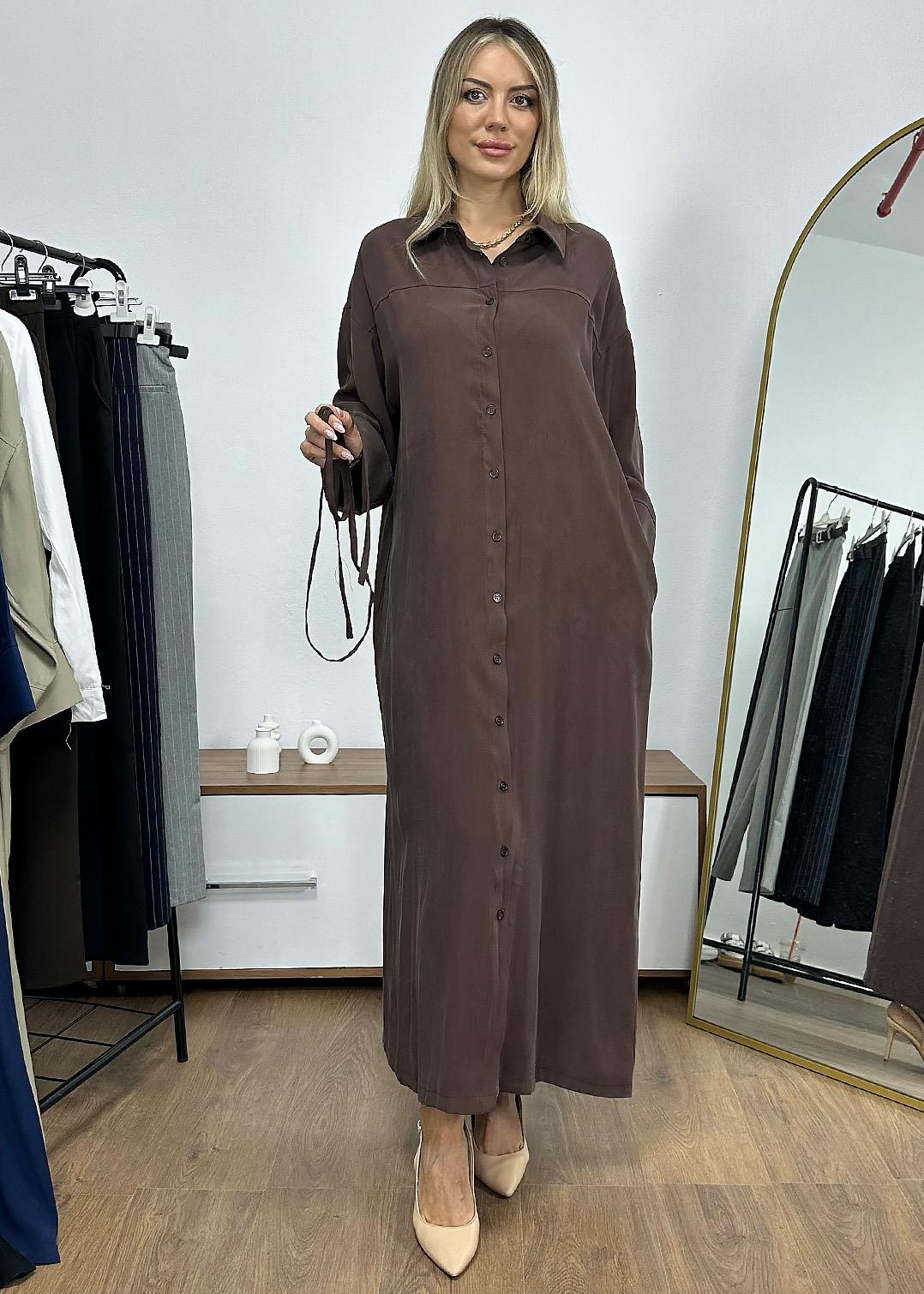Kemerli Gömlek Elbise - Kahverengi Kemerli Gömlek Elbise -Yeşil Kemerli Gömlek Elbise -Bordo Kemerli Gömlek Elbise - Lacivert Kemerli Gömlek Elbise -Siyah