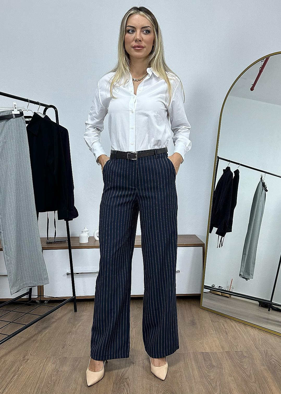 Kemerli Palazzo  Pantolon - Lacivert