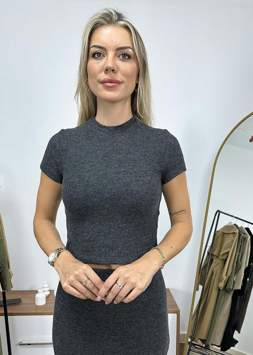 Kısa Kollu Bisiklet Yaka Yumoş Bluz - Antrasit
