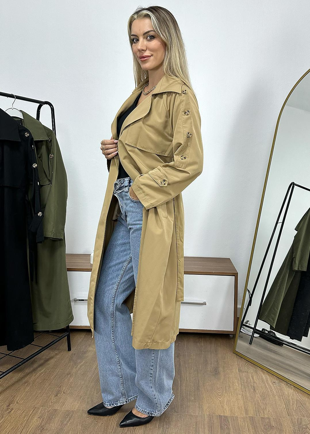 Omuz Düğme Detaylı Önü Bağlamalı Trençkot -  Siyah Omuz Düğme Detaylı Önü Bağlamalı Trençkot - Taş Omuz Düğme Detaylı Önü Bağlamalı Trençkot - Kamel Omuz Düğme Detaylı Önü Bağlamalı Trençkot - Yeşil