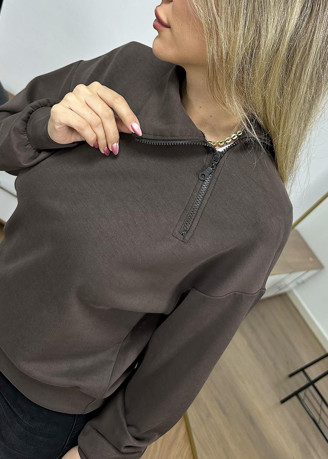 Yakası Yandan Fermuarlı Oysho Sweat - Kahverengi