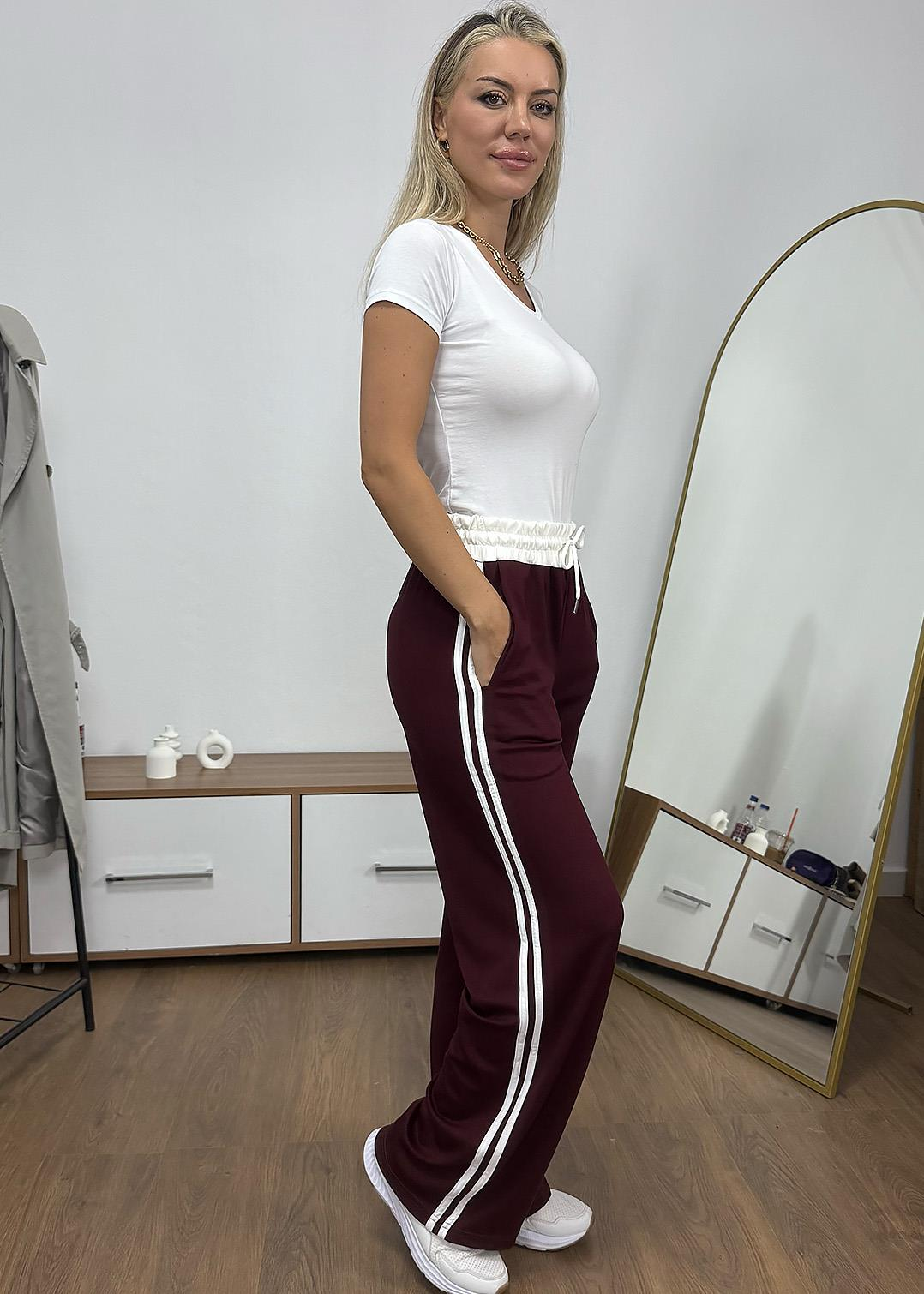 Yanı Çift Şeritli Kumaş Eşofman -Bordo