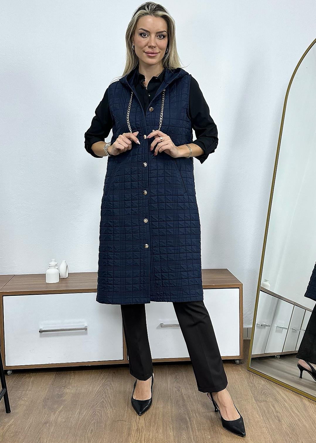 Zincir Detaylı Fileto Cepli Kapitone Yelek - Lacivert
